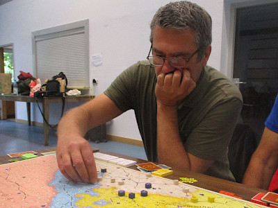 Spiel 20: Der spontane Helfer Anton Telle grübelt. Spiel 16: Jose Bonilla Rau verteidigt Kammin mit 4 Generälen.