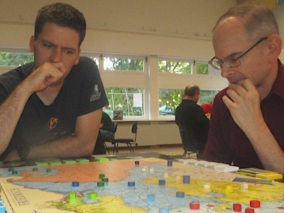 Spiel 6: Eine Pik-Schlacht in Schlesien war gerade ausgefochten. Spiel 13: Tobias Kriener und Jürgen Winter. |