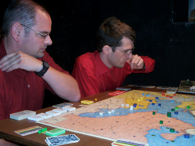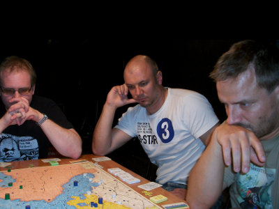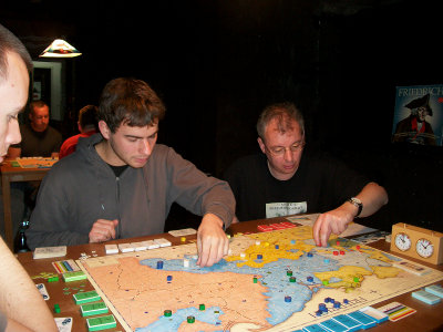 Partie 6: Steffen Schröder zählt seine Armeen für einen großen Kreuzkampf in Schlesien. Partie 9: Mark Luta beobachet die Züge Andrew Browns mit Frankreich. |