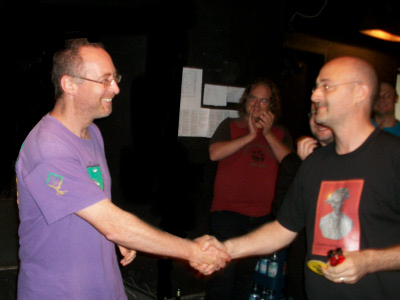 Demzufolge zogen als die vier Bestplazierten Manfred Wichmann, Steffen Schröder, Sebastian Wetter und Bernd Preiß ins Endspiel ein. Dieses begann um 17:00 Uhr. Manfred Wichmann hatte hierbei als Vorrundenerster die freie Wahl der Rolle, Steffen Schröder die zweite Wahl, usw. Es sei angemerkt, daß bisher noch nie ein Teilnehmer alle vier Vorrundenspiele gewinnen konnte! Manfred Wichmann schrieb somit WM-Geschichte! Ebenfalls neu war, daß kein Finalteilnehmer des Vorjahres im diesjährigen Endspiel vertreten war. Dennoch sind es bekannte Gesichter: Bernd ist Weltmeister von 2008 und bringt es nun auf 3 Finalteilnahmen, Steffen ebenfalls auf 3 Teilnahmen und Manfred auf 2. Manfred gewann auch den Preis für den fairsten Spieler der Vorrunde: den Fairen Ehrensvärd 2011. |